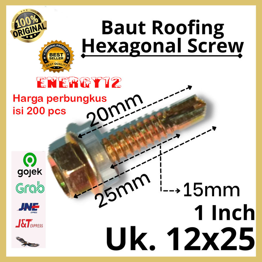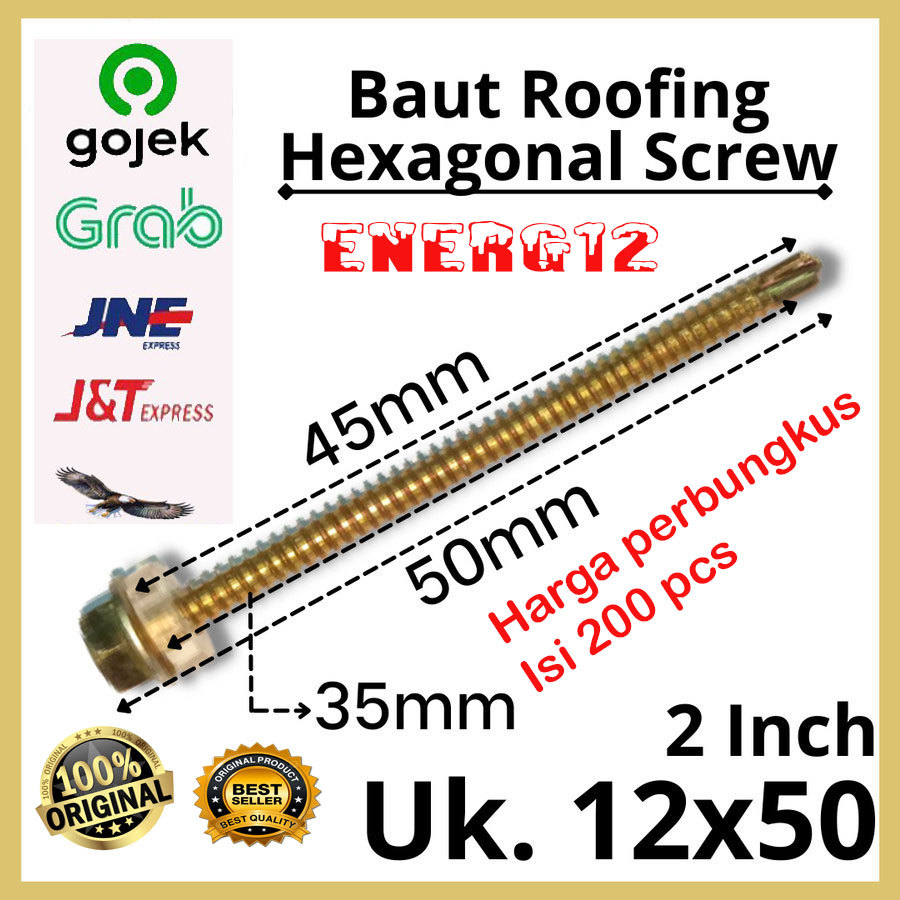 -Ukuran 12x50mm - Panjang total dari ujung sampai ujung : 50mm / 5cm - 2 INCH - Panjang Hanya body bautnya saja : 45mm / 4,5 cm - Panjang hanya ulir nya saja : 35mm / 3,5 cm - Kunci baut : 8mm - Harga untuk perbungkus isi 200 pcs - 1 Dus besar isi 30 Bungkus - Tidak mudah patah atau tumpul - Tajam tembus baja dan Presisi
