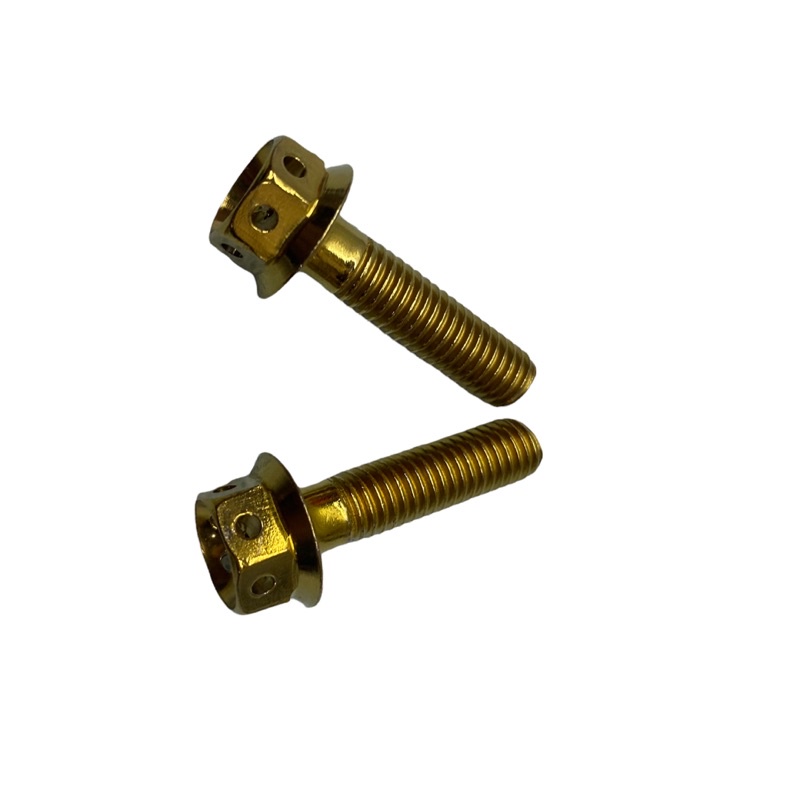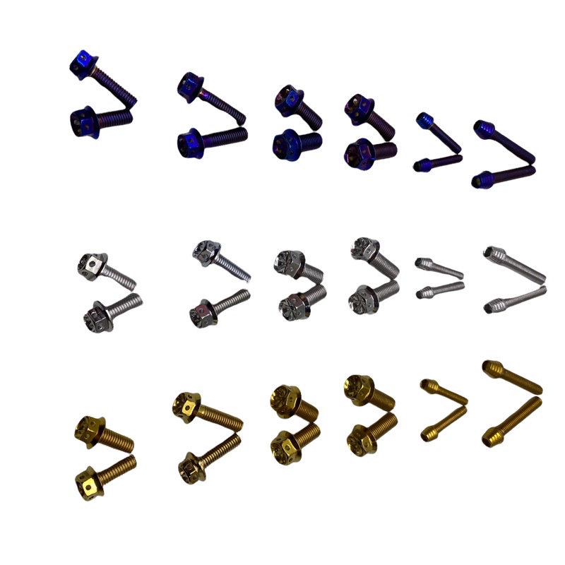 Baut SET Probolt Flower & Kerucut NB : •Isi Set / Sepasang / 2pcs •Color : Crum, Gold, Blue •Untuk : *Tabung Shock Standar / Standar Variasi *Kaliper Standar / Variasi •Baut Berbahan Besi Probolt & Stanless