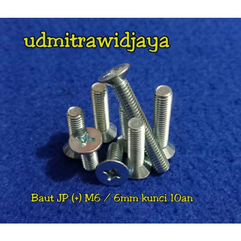 Baut Tirus Flat kunci 10 model JF + TIRUS panjang 1,5cm 2cm 2,5cm 3cm 4cm 5cm 6cm baut galvanis M6 6mm baut obeng kunci 10an baut kunci obeng 10mm baut rak susun baut pagar stainless baut grade 4.6 baut ucp putih baut JF (+) Baut jalu motor baut sepeda