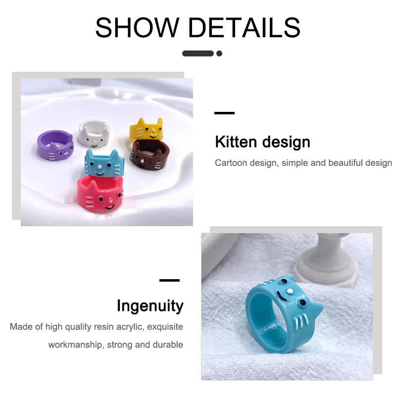 Cincin Akrilik Anak Kucing Lucu Cincin Kartun Hewan Kecil Cincin Tiga Dimensi
