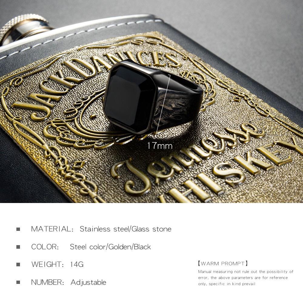 Detail [BAYAR DI TEMPAT] Cincin Titanium Pria Model Kotak Permata Hitam Warna Black, Gold, Silver Premium