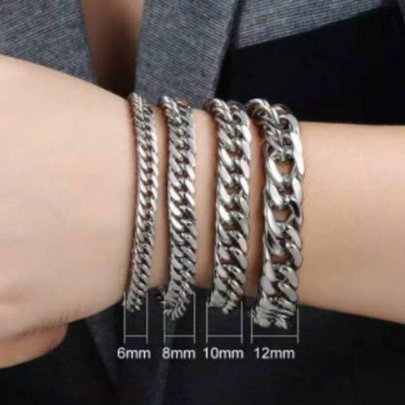 Model : Gelang Warna : Silver / Emas Bahan : Titanium Tersedia 4 Ukuran : 6mm / 8mm / 10mm / 12mm