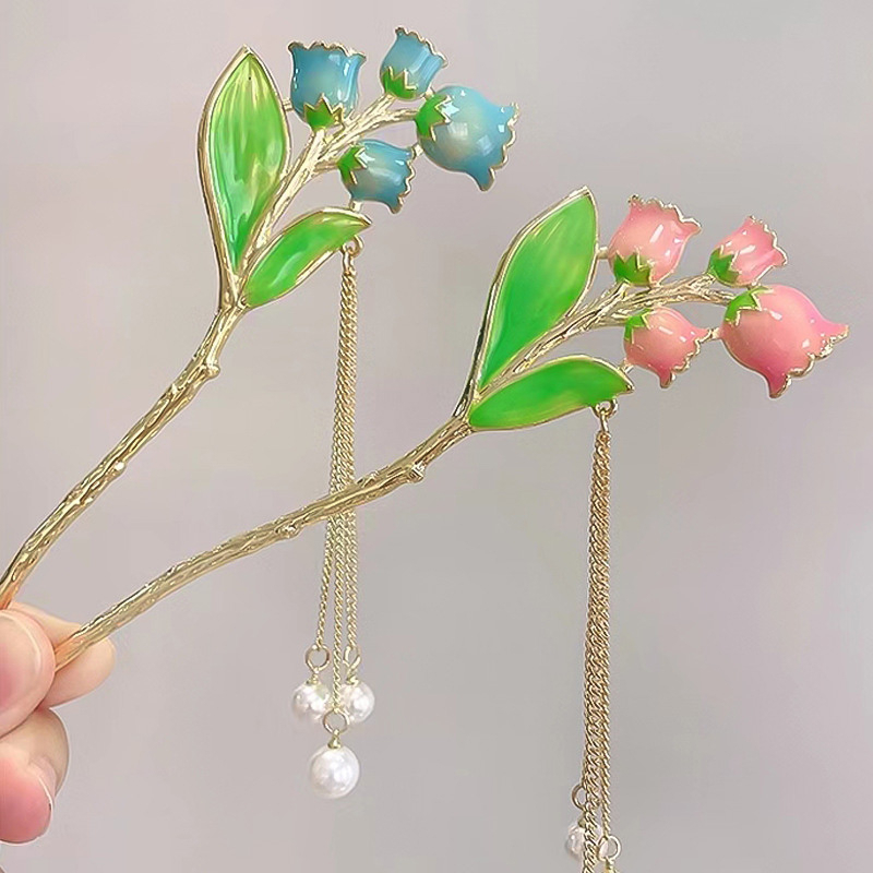 Jepit Rambut Anggrek Sederhana Modern Mutiara Logam Rumbai Jepit Rambut Desain Niche Hiasan Kepala