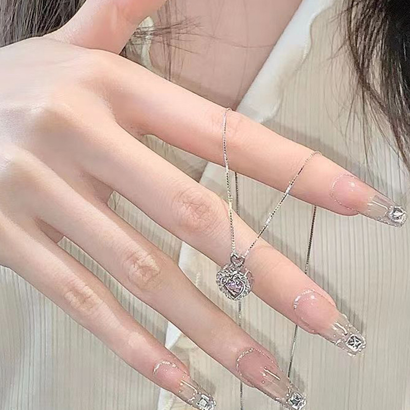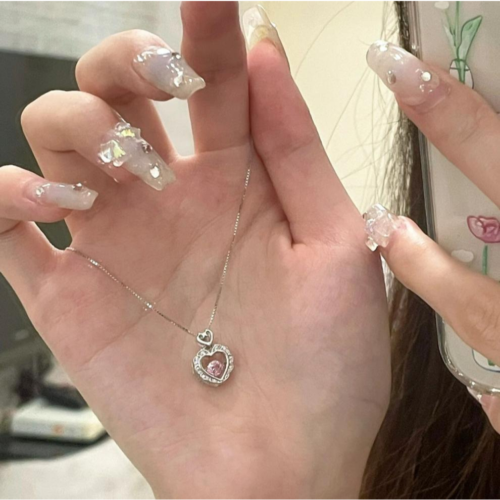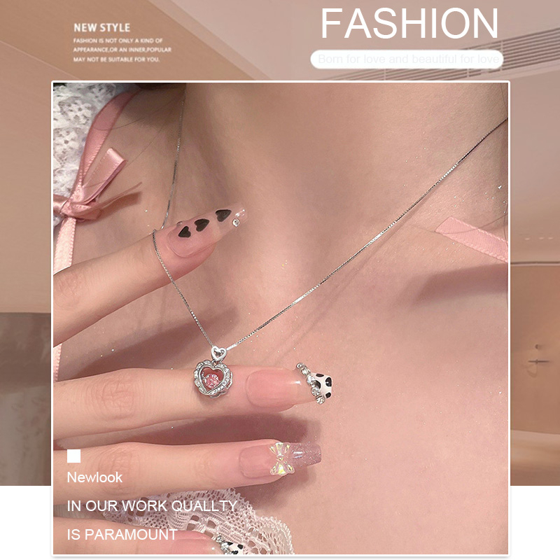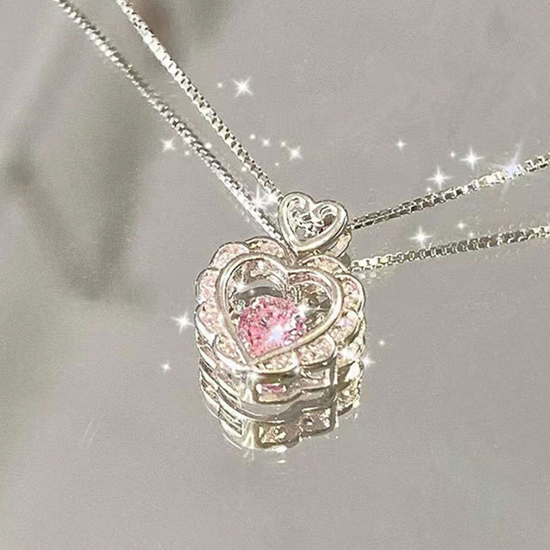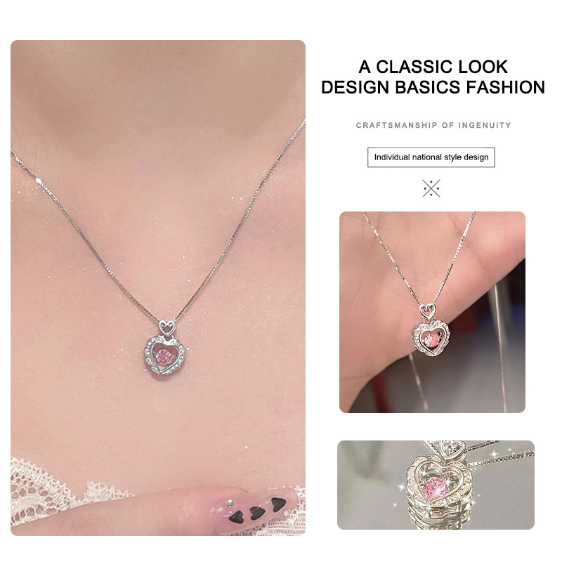 Kalung Cinta Berlian Merah Muda Cerdas Gadis Valentine Hari Serbaguna Desain Hadiah Rantai Klavikula Rantai Klavikula