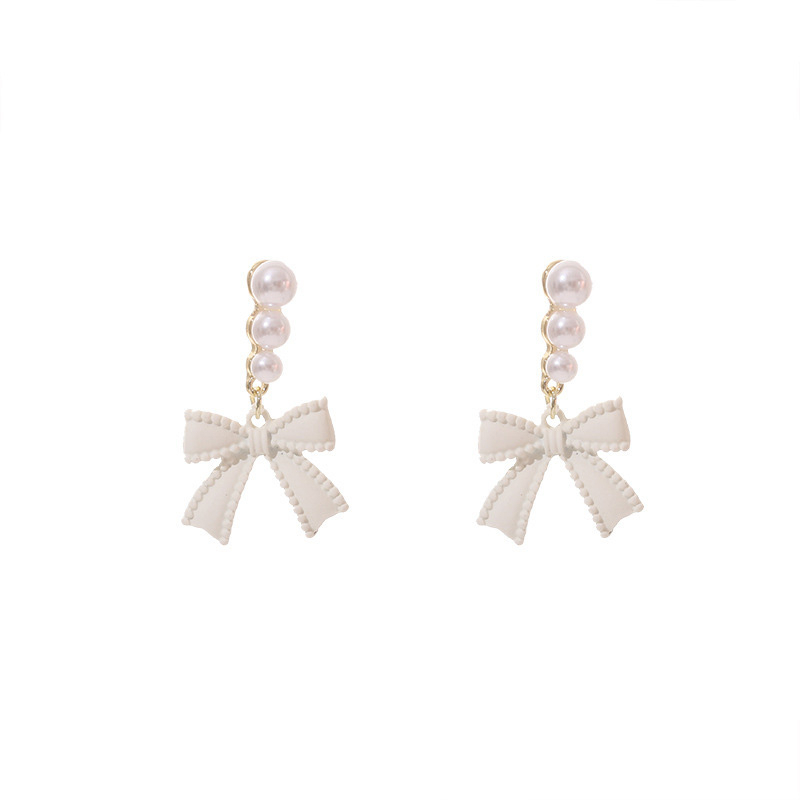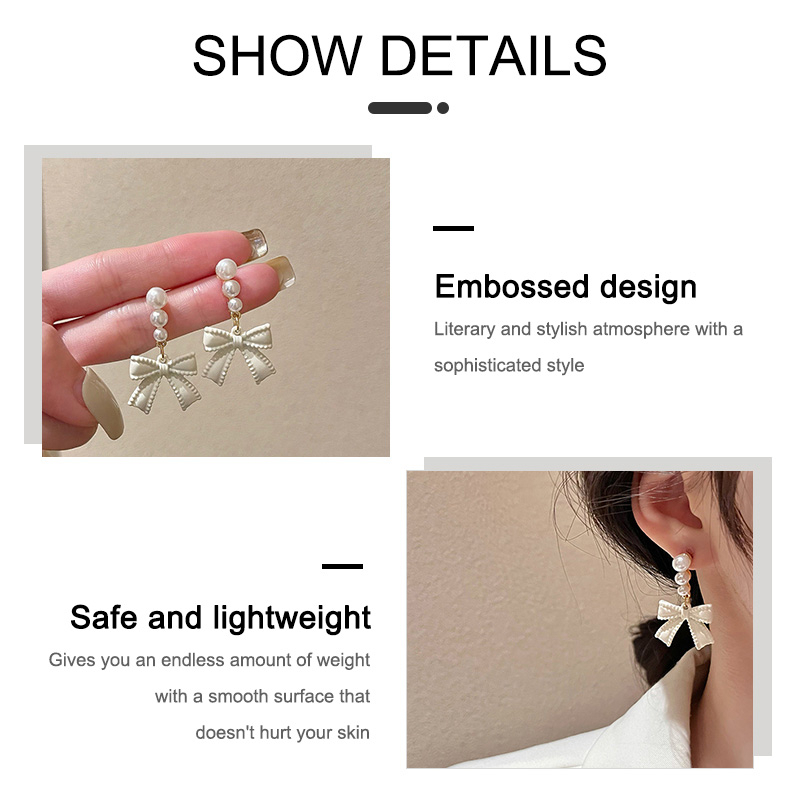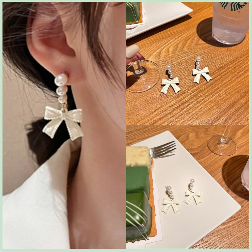 Detail 【Bayar di tempat】S925 Off-white Busur Anting Mutiara Perempuan Berlebihan Anting Vintage Temperamen Senior Rasa Perhiasan Telinga