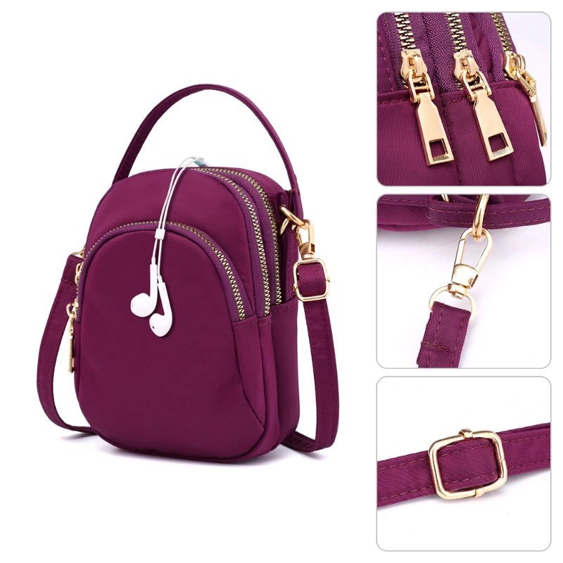 MATERIALS : HIGH QUALITY NYLON SIZE : 11CM X 7CM X 18CM TAS IMPORT YA BUKAN LOKAL - Bisa diselempang bisa ditenteng - Terdapat lobang handsfree - Terdapat 3 kantong/ruang dengan sleting - Tali tas bisa di setting panjang pendeknya - Good Fabrication - Fashionable