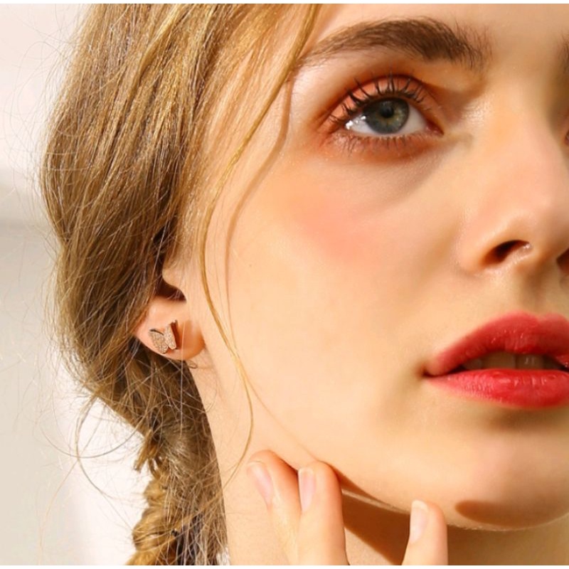 Detail [ Bayar Ditempat ] Anting Tusuk Wanita Model Kupu Rosegold Titanium Anti Karat