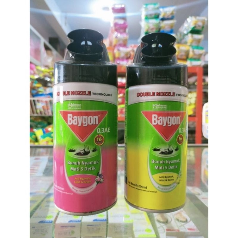 Baygon anti nyamuk, lalat, dan kecoa diformulasikan untuk membunuh nyamuk Aedes aegypti, Culex quinquefasciatus, lalat Musca domestica, kecoa Blatella germanica, Periplanneta americana, dan semut Anoplolepis gracilipes di dalam ruangan.