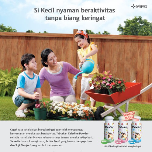 Bedak yang mengandung CALAMINE yang berfungsi untuk membantu mengatasi rasa gatal yang timbul akibat biang keringat. Ditambah kandungan Champora dan Menthol yang memberikan sensasi sejuk di kulit, sehingga tidak mengganggu aktifitas sehari-hari. Sangat cocok digunakan setiap hari sebagai pencegahan terhadap biang keringat sekaligus membuat tubuh harum dan segar sepanjang hari.
