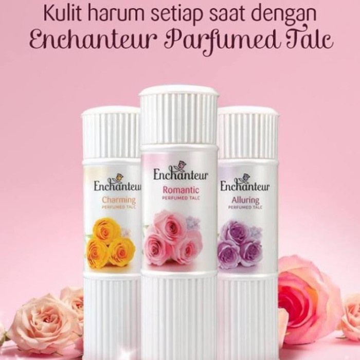 -Manjakan diri Anda dengan Enchanteur Alluring Perfumed Talc dengan keharuman Rose & Irish yang menggoda dengan Cream Vanilla yang merawat kulit Anda dengan lembut.