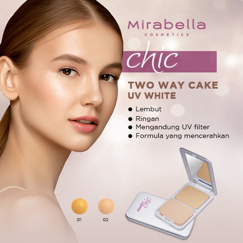 Mirabella Chic Two Way Cake UV White 14gr - TWC Original 100% Ada No.BPOM di kemasan