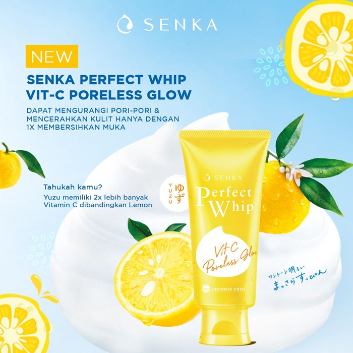 PERFECT WHIP VITC PORELESS GLOW Say bye-bye untuk pori-pori sial – mengencangkan pori-pori dan mencerahkan kulit untuk GLOWY PORE-FECTION 1. PURIFY: dengan special micro foam mampu menembus 7 lapisan kotoran wajah dengan gentle & memurnikan kotoran. Mampu membersihkan pori-pori tersumbat oleh sebum, keringat, sisa make-up, kulit mati, komedo, dan juga sun screen. 2. PORELESS: dengan kandungan BHA, mampu mengecilkan pori-pori dan tersamarkan, sehingga kulit lebih lembut, halus dari dekat 3. GLOW: dengan ekstrak Japanes yuzu – mampu menutrisi kulit dengan Vitamin C, menjadi lebih sehat dan glowing. Mengandung rahasia Senka dengan Double Hyalurnic Acid dan White Cocoon Essence yang mampu melembabkan kulit dan menutrisi kulit Diformulasikan dengan kandungan “Clean Beauty” – bebas minyak, alcohol, parabean dan penjahat kulit Mengangkat 7 lapisan kotoran