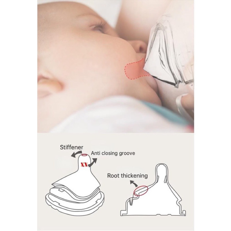 Fitur: 1. Dot silikon yang lembut mimik natural breast feeding. 2. Sistem anti-colic yang melindungi bayi dari perut kembung. 3. Ventilasi udara mengelilingi botol susu untuk mencegah masuknya angin dan minimalisirkan oksidasi dari nutrisi ASI/Susu yang berharga. 4. Dot memiliki desain assimetris yang memberikan posisi natural pada saat menyusui sehingga menyerupai posisi direct breastfeeding. 5. Terbuat dari bahan liquid silikon yang telah teruji secara internasional.