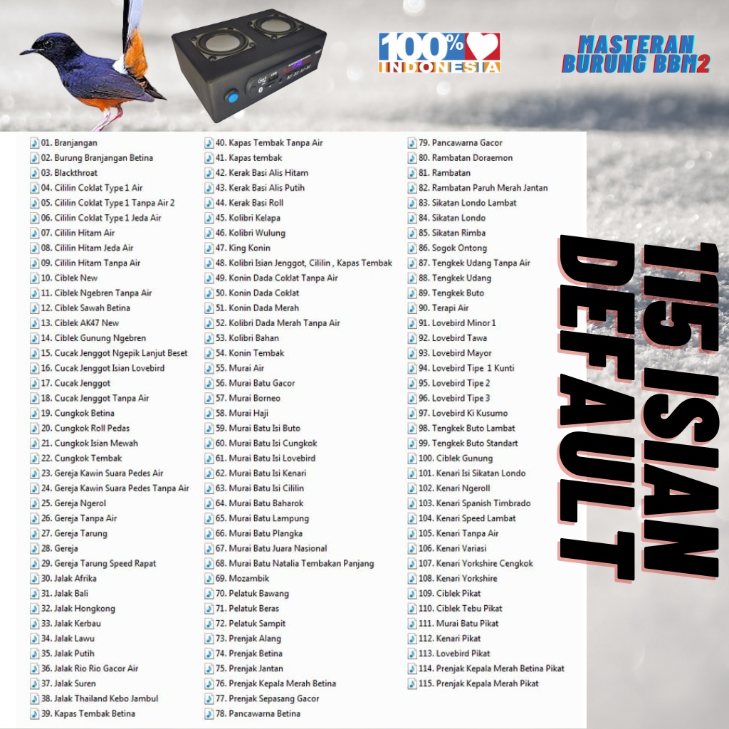 riset panjang yang membuahkan hasil. masteran yang cocok untuk semua karakter suara burung. cocok untuk memutar musik melalui koneksi bluetooth