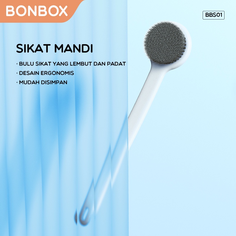 SIKAT MANDI BONBOX Kelebihan : -Bulu Sikat Yang Lembut Dan Padat -Desain Egonomis Sehingga Mudah dipakai dan Menjangkau jauh -Mudah disimpan dapat digantung -Bahan Matte , Tidak Licin Saat Digunakan