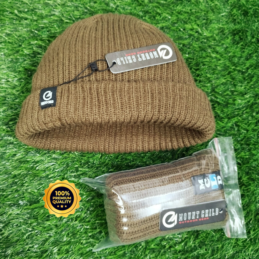 Detail Beanie Hat Mountchild Kupluk rajut Warna Cokelat Gold Pria Wanita Dewasa Outdoor