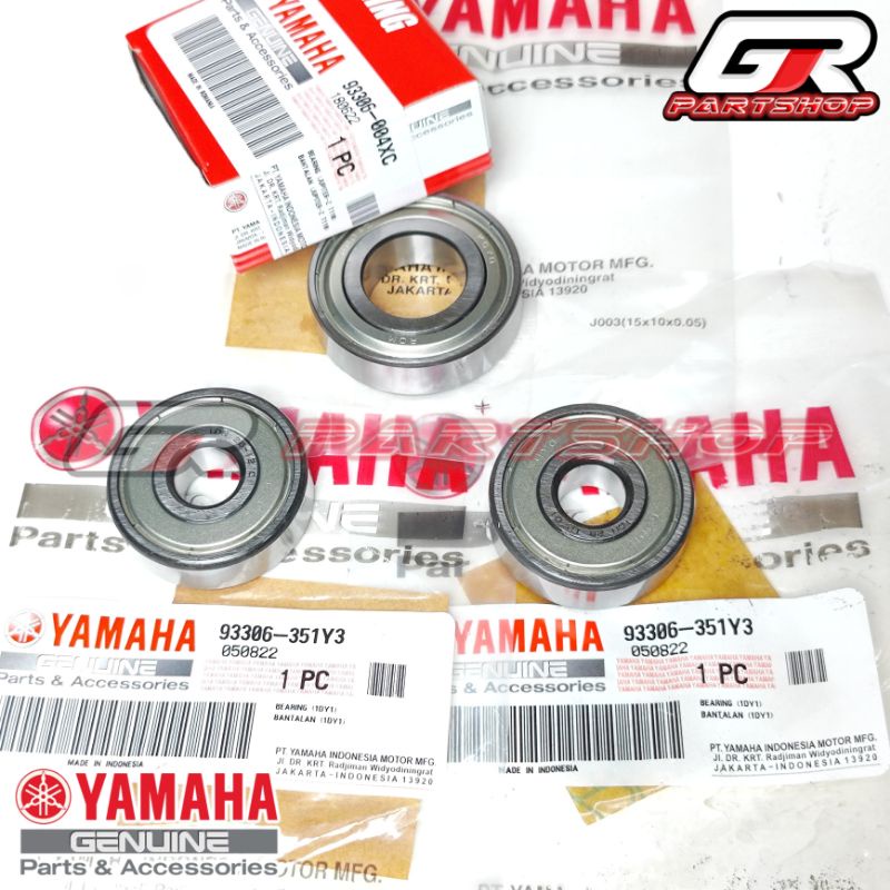 bearing roda belakang set f1zr, crypton, force one, vega old/new, jupiter original resmi YGP harga untuk 1 set (3 pcs) paket part terdiri dari: -bearing roda belakang kanan -bearing roda belakang kiri -bearing napgir kondisi barang 100% baru dan original Yamaha