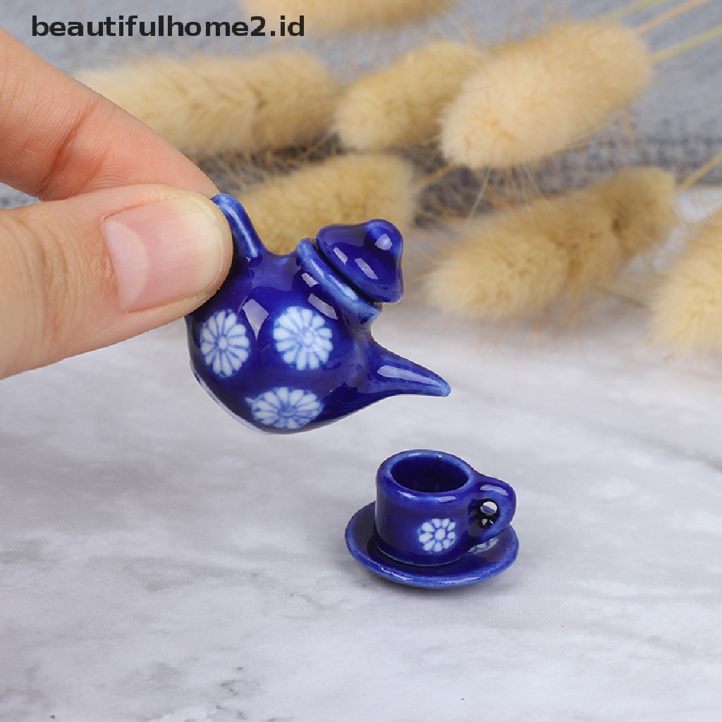 Detail (beautifulhome2.id) 15pcs / Set Miniatur Cangkir Teh Porselen Skala 1: 12 Untuk Rumah Boneka