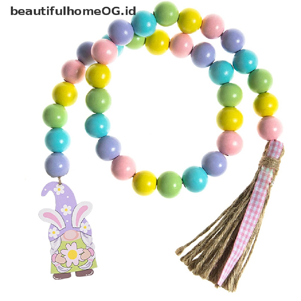 Perlengkapan Rumah > Dekorasi > Dekorasi Lainnya > // Beautifulhomeog.id// 1Pcs Easter Wood Bead Garland Manik-Manik Warna Warni Dengan Tali Rami Kotak-Kotak Rumbai **