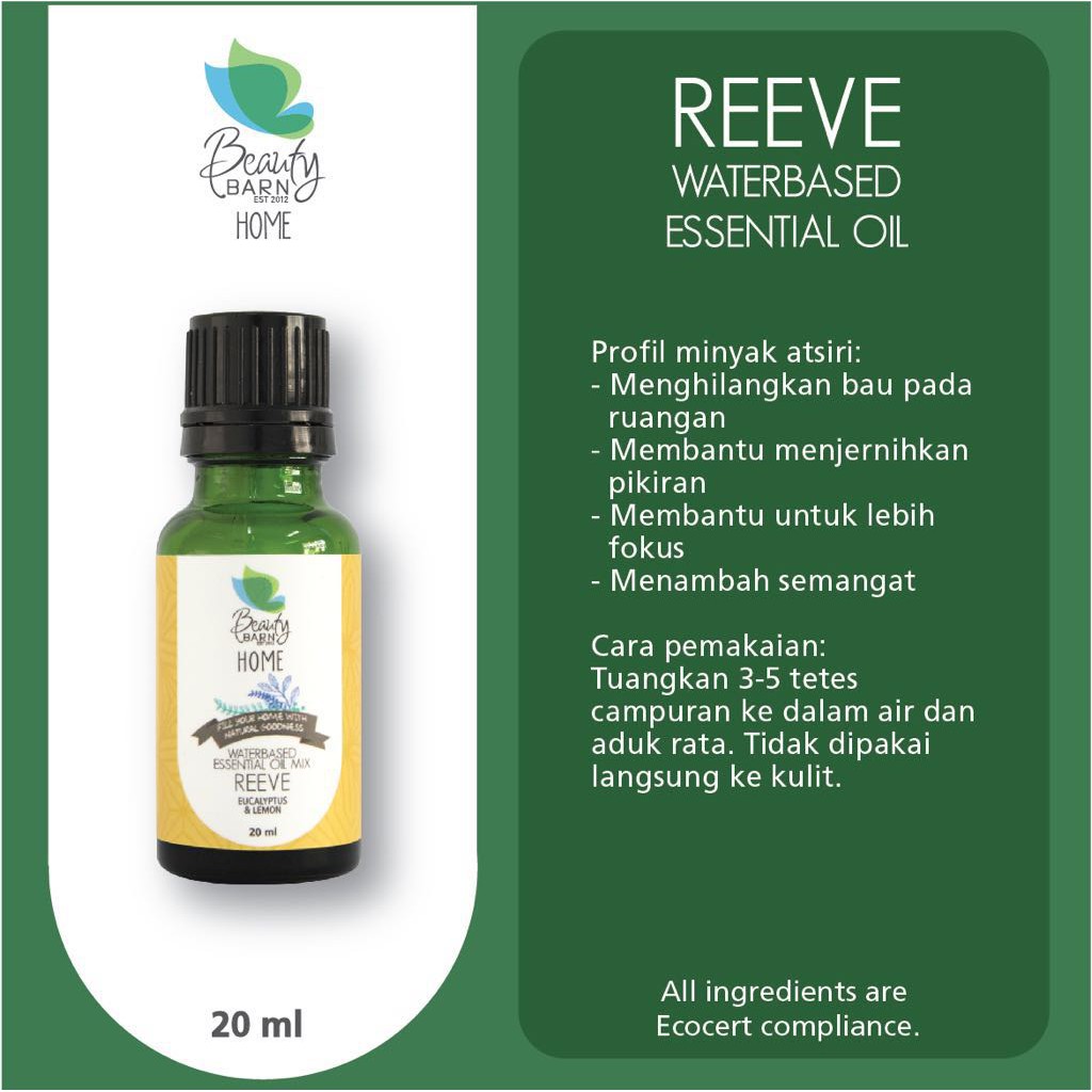 Beauty Barn Home Revee adalah Cairan aromatherapi Untuk humidifier, diffuser atau mesin lainnya Menggunakan air sebagai media Menghilangkan aroma tidak sedap dan sebagai aromatherapy yang membantu menyegarkan pikiran agar lebih fokus dan meningkatkkan kualitas hidup