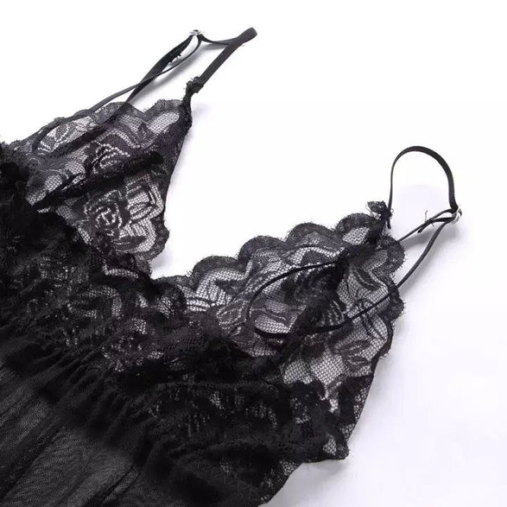 Detail Beauty Jaya - Lingerie Baju Wanita Sexy V Model Renda Serat Mesh Eksotis + G String