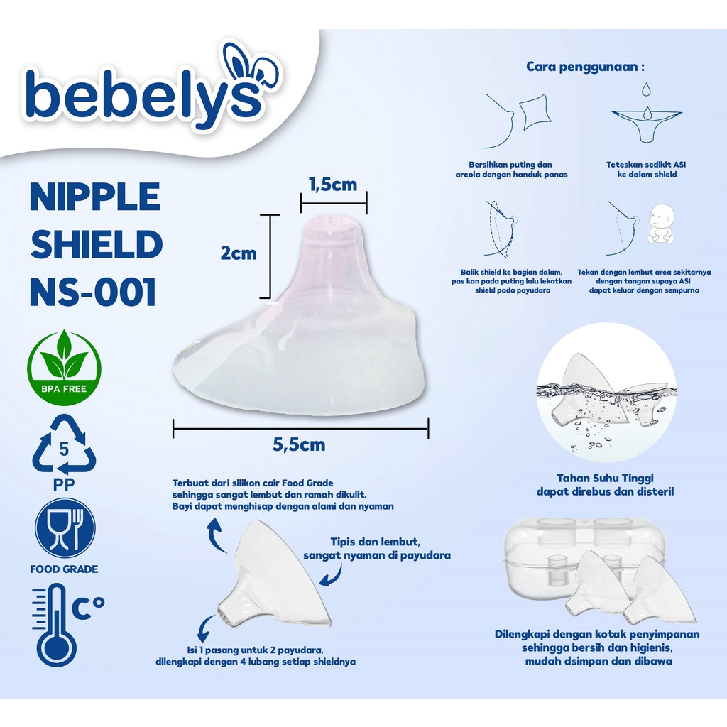 Menyusui adalah moment yang sangat berharga bagi setiap ibu dan bayi yang tidak boleh dilewatkan. Namun proses menyusui tidaklah mudah bagi seorang ibu, dari puting ibu yang masuk kedalam atau tenggelam, digigit bayi hingga puting terluka yang membuat proses menyusui menjadi terhalang. Kini Ibu tidak perlu khawatir untuk kendala - kendala tersebut karena BEBELYS NIPPLE SHIELD memberikan solusi menyusui dengan nyaman dan tetap dekat dengan bayi tanpa harus merasakan kendala tersebut sehingga Ibu tidak melewatkan waktu yang berharga dengan sang bayi.