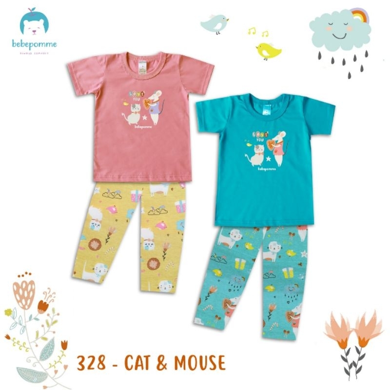 Bebepomme Piyama / Baju Tidur Anak Bayi Anak Tanggung | Bebe Pomme Pajamas Setelan Pendek Panjang CAT MOUSE