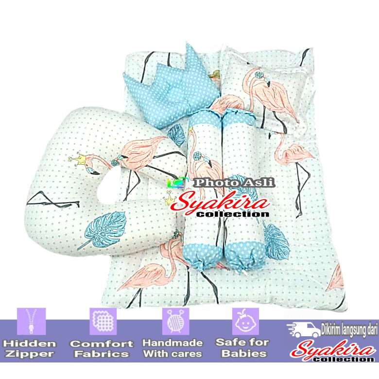 Bedcover baby set plus bantal menyusui Inc 1 Bantal Menyusui 1 Bantal peang mahkota 1 bantal Bayi 2 guling bayi 1 bed cover ukuran 100x70