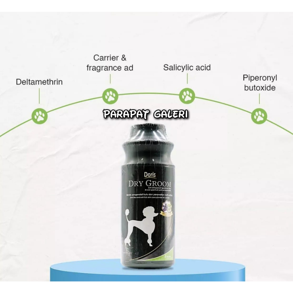 Detail Bedak Doris Dry Groom 100 gr - Bedak Grooming Anjing - Anti Gatal & Kutu