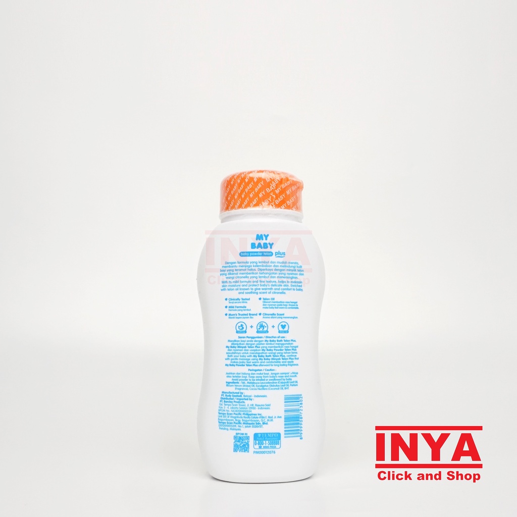 Direction of use: Bath your baby with My Baby Bath Telon Plus, continue with gentle Massage using My Baby Minyak Telon Plus that makes baby feel warm and comfortable and apply My Baby Powder Telon Plus afterward for long lasting fragrance.