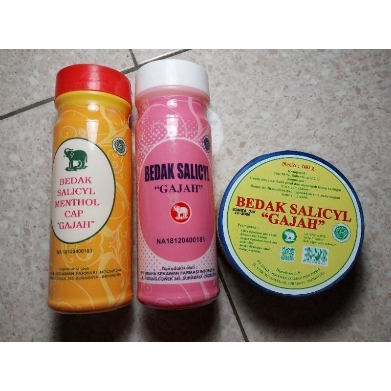Bedak Salicyl cap gajah sangat manjur untuk menyembuhkan macam-macam penyakit kulit, seperti: gatal-gatal pada kulit, keringat buntet, bisul-bisul, cacar air, gabaken, dll penyakit kulit.
