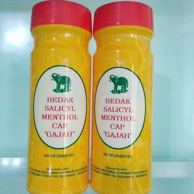 Bedak Salicyl Menthol Gadjah sangat manjur untuk menyembuhkan macam-macam penyakit kulit, seperti: gatal-gatal pada kulit, keringat buntet, bisul-bisul, cacar air, gabaken, dll penyakit kulit.