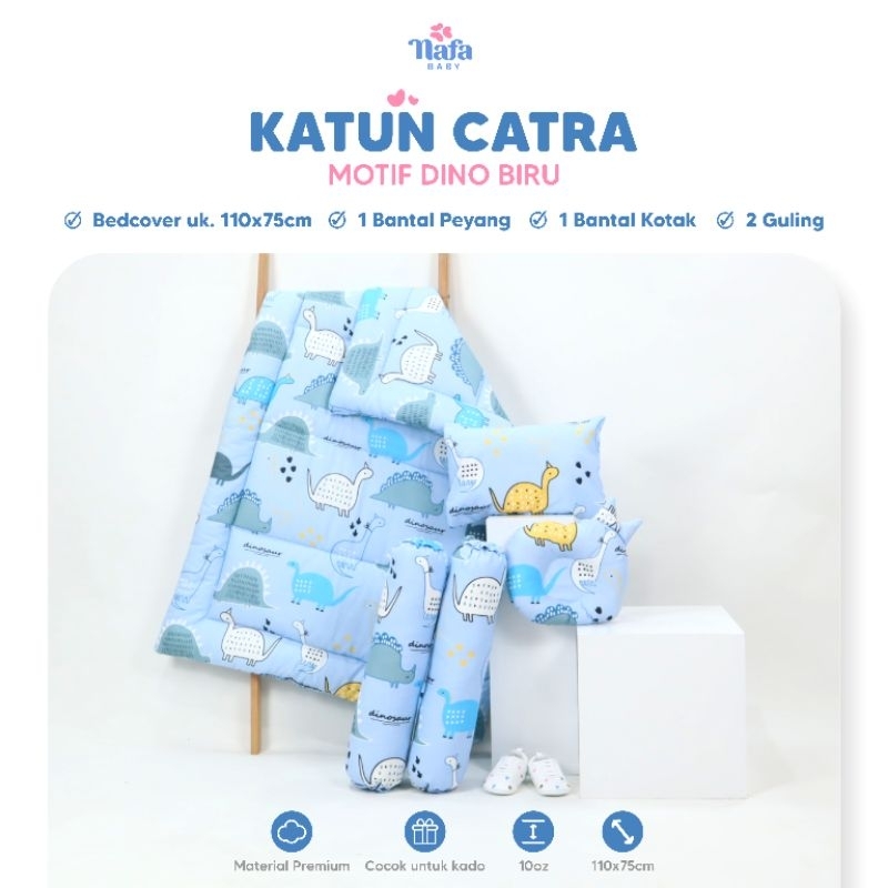 TERDIRI DARI: 1 bedcover ukuran 110x75cm TEBAL -+3cm 1 Bantal Anti Peyang 1 bantal 25x35cm ( Sarung bisa di lepas) 2 guling standard bayi NEW BORN P 50 x D 12 cm (Sarung bisa di lepas) Material : Katun Catra CVC & Dakron (Lembut & Sangat nyaman untuk bayi) Berat pengiriman 1 KG