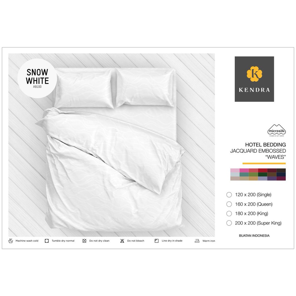 Detail Bedcover + sprei KENDRA POLOS 180X200 / 160x200 TINGGI 30 SNOW WHITE / PUTIH - KING 180 160 T30 BC