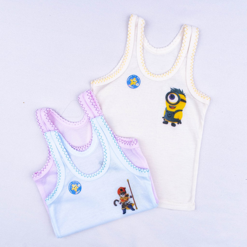 Detail BEE - Singlet Anak Stiker / Singlet Kaos Dalam Bayi Motif Karakter Putih Dan Warna Star KIds Stiker
