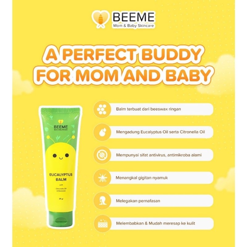 Balm yang terbuat dari Beeswax ringan dan mudah meresap dengan kandungan Eucalyptus Oil serta Citronella Oil. Melembabkan juga memberi sensasi hangat pada kulit serta menangkal gigitan nyamuk. Kandungan Eucalyptus nya mempunyai sifat antivirus dan antimikroba alami & dapat melegakan pernafasan. Aman digunakan untuk semua usia.