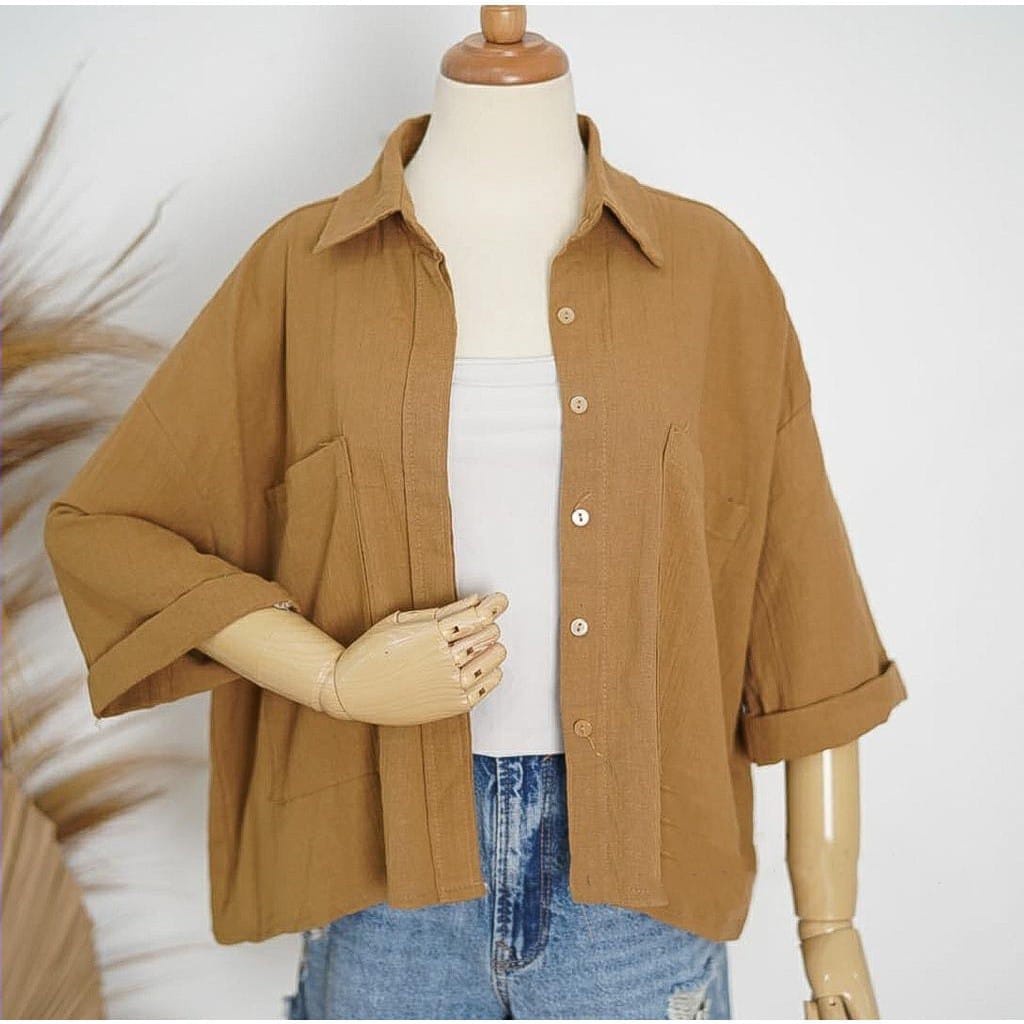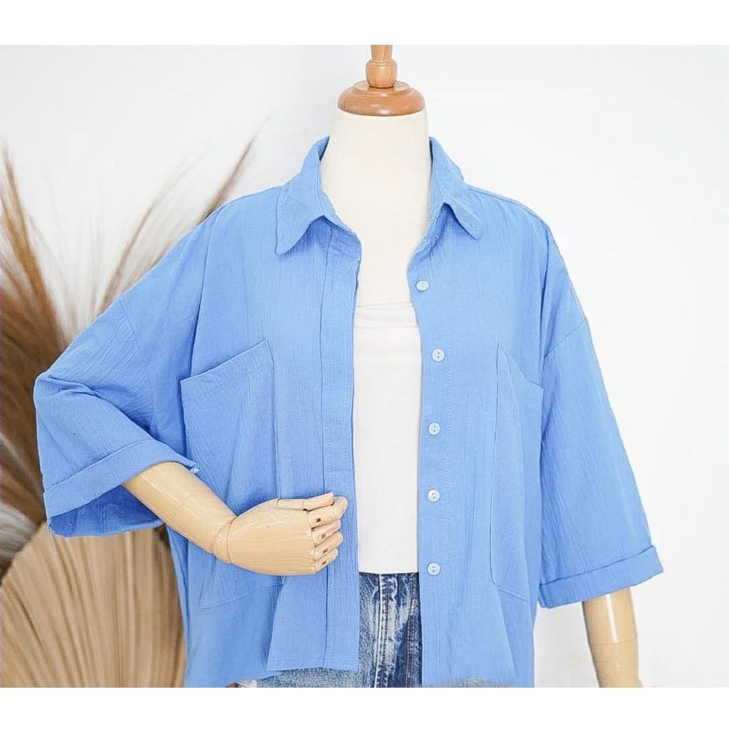 Pakaian Wanita > Atasan > Kemeja & Blouse > BEFAST - ZEC OOTD KEMEJA FEYA / Moshie Oversize CRINCLE / Kemeja Wanita Terbaru / Pakaian Casual Wanita / OOTD Wanita Ala Style Korean / Hem Lengan 3/4 Polos / Fashion Kekinian Wanita Remaja Trendy / Outfit Wanita Kerja/Kampus