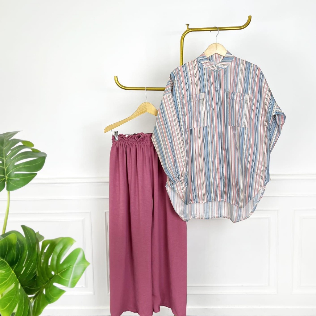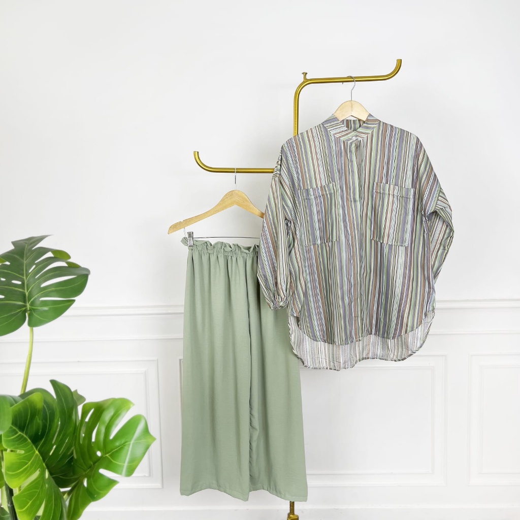 Pakaian Wanita > Set > Set Wanita > BEFAST - ZEC OOTD WANITA SETELAN UNA / One Set Sierra / Setelan Wanita Keluaran Terbaru / Fashion Kekinian Remaja ABG Trendy / Set Atasan Kemeja Lengan Panjang+Celana Kulot Panjang / Outfit Wanita Daily / Oneset Terlaris
