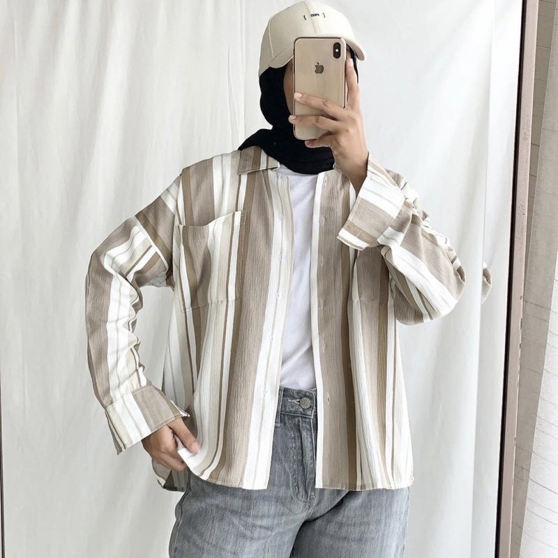 Pakaian Wanita > Atasan > Kemeja & Blouse > BEFAST - ZRD OOTD Kemeja Raimbow PRASTI / CERENA EARTHY TOP SHIRT / Kemeja Stripe Terbaru / Atasan Wanita lengan Panjang / Kemeja Casual Wanita / Hem Kerja / Fashion kekinian Remaja ABG Wanita / Kem Bisa Di Jadikan Outer / OOTD Wanita Trendy