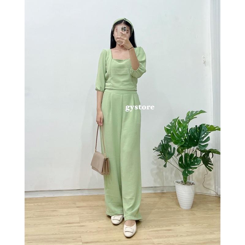BEFAST - ZSO OOTD SETELAN WANITA SARAH / VERONICA SET / Oneset Wanita Model Terbaru / Pakaian Casual Wanita Remaja / Set Atasan Blouse Leher Kotak+Celana Panjang / Outfit Remaja Kekinian Trendy / Setelan Polos Terlaris / Fashion Daily Remaja ABG Wanita