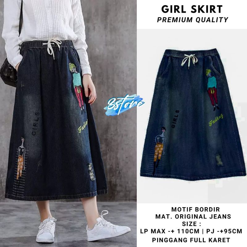 Bahan Jeans Wash Pinggang Full Karet Bordir Girls Cantik