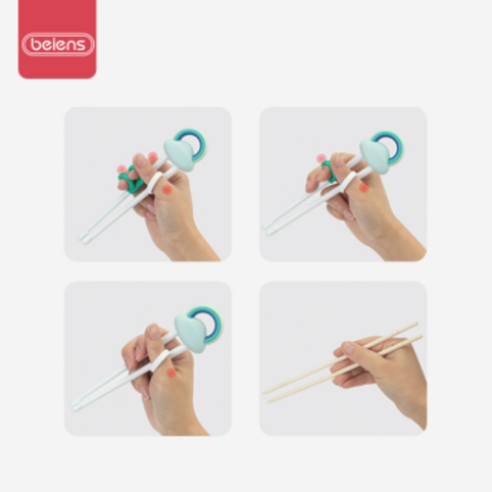 Spesifikasi Merk: Beiens Nama produk: Baby Training Chopsticks Model: WB0240 Material: PP, PBT, dan silicone Cocok untuk usia 2 tahun ke atas Dimensi produk : 4.5*18cm Dimensi paket: 20*7*4 cm Berat paket: 250 gram