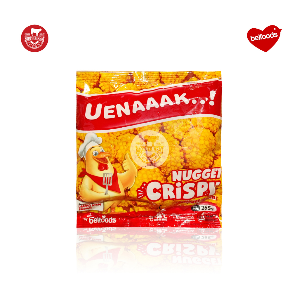 INFORMASI PRODUK: Belfoods Uenaaak Naget Crispy [265gr] Naget ayam dengan bulir/bubble renyah. - Produk: Nugget Ayam - Berat/Kemasan: 265gr - Penyimpanan: Freezer/Beku - Halal 100% MUI