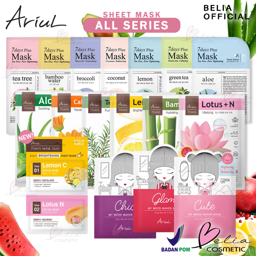🌸 ARIUL 7 Days Mask Sheet + Watermelon Sheet Mask + 7days Plus Mask | My Mood Maker Mask 🌸 ✔️BPOM ✔️ EXP terbaru
