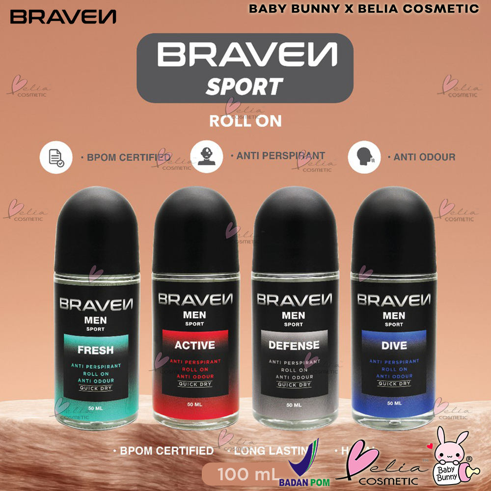 Detail ❤ BELIA ❤ BRAVEN Men Sport Anti Perspirant Roll On Anti Odour 50ml | Deo Roll On | Deodorant | Quick Dry | Baby Bunny