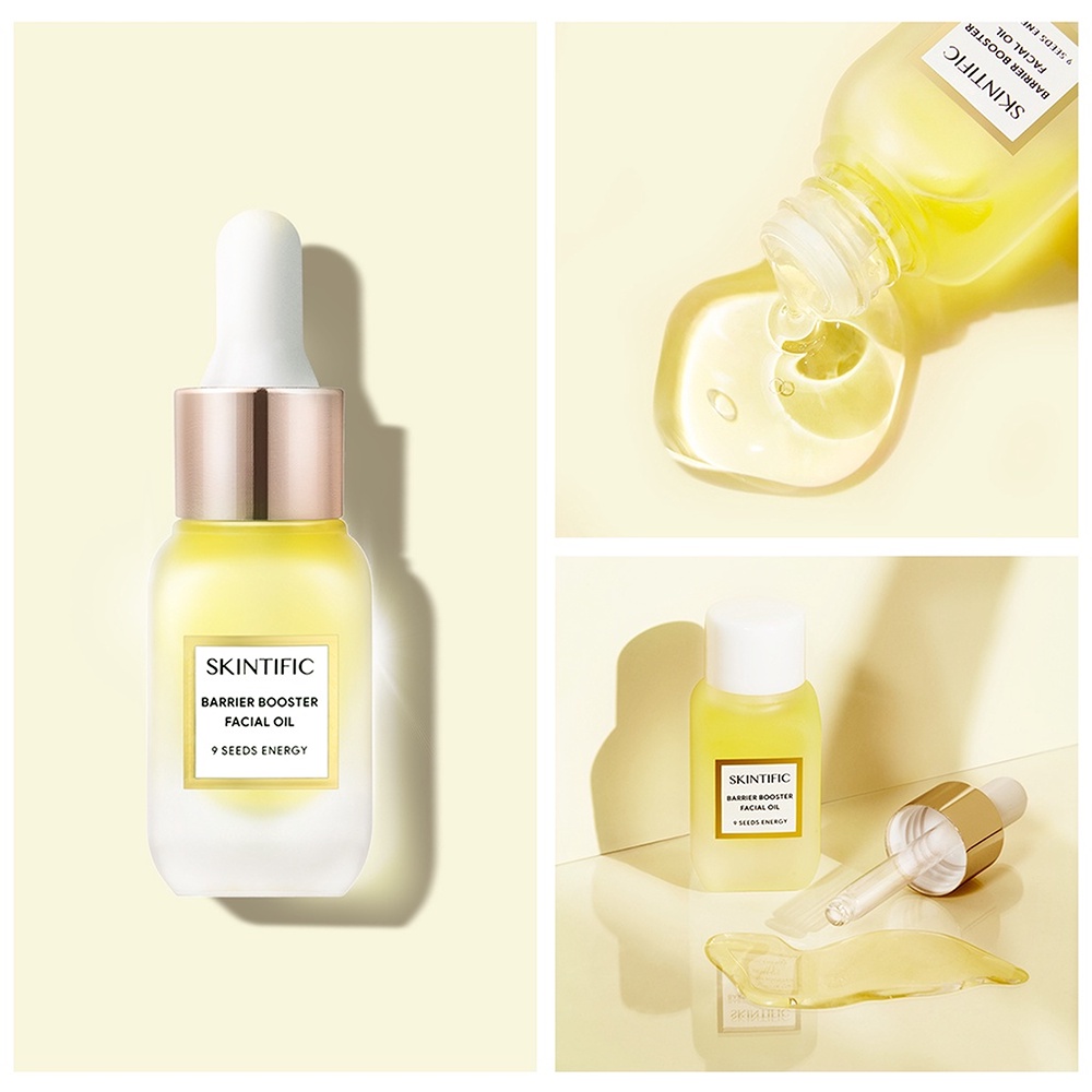 Facial Oil yang menggabungkan 9 jenis natural oil Jojoba, Squalane, Shea Butter, Macadamia, Rose Hip, Sunflower Seed, Marula, Camelia, dan White Chia Seed, untuk mengatasi permasalahan kulit kering, bertekstur dan kemerahan. Dengan tekstur yang ringan, Facial Oil ini menghidrasi, melembutkan, dan menenangkan kulit, untuk perbaikan skin barrier secara intensif dan mendalam. Dapat digunakan langsung, ataupun dicampurkan pada skincare lain untuk mendorong hasil yang optimal.