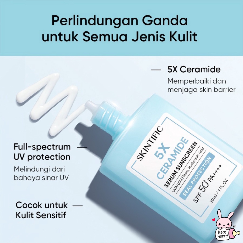 ✨SKINTIFIC 5X Ceramide Serum Sunscreen SPF50 PA++++ | 30ml Melindungi dari bahaya sinar UVA, UVB dan Blue Light Memperbaiki dan mengembalikan skin barrier Memproteksi kulit wajah tanpa iritasi Menjaga dan mengunci kelembaban kulit