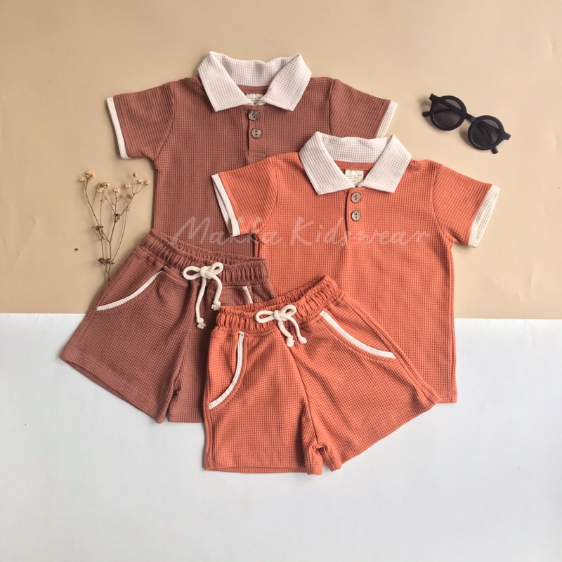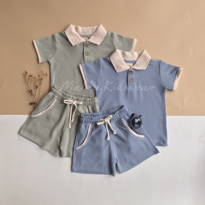 Setelan polo untuk anak laki-laki dan perempuan. Bahan waffle knit premium sehingga adem dan nyaman di pakai si kecil beraktivitas. Dilengkapi dengan dua kancing hidup di bagian depan baju yang memudahkan ketika dipakaikan ke si kecil. Pada bagian celana terdapat dua saku hidup sehingga menambah stylish, serta pinggang yang elastis membuat si kecil nyaman beraktivitas. Cocok untuk jalan-jalan serta melengkapi ootd si kecil mom.