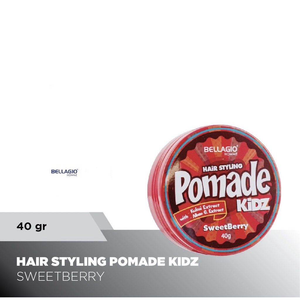 Bellagio Home Hair Styling Pomade Kidz 40g. Brand Bellagio kini hadir Hair Styling khusus anak-anak Hadir dengan 2 varian aroma yang pastinya disukai anak-anak, memberikan gaya rambut terbaik untuk anak laki-laki, menjadikan rambut berkilau dan memiliki kekerasan yang sempurna.