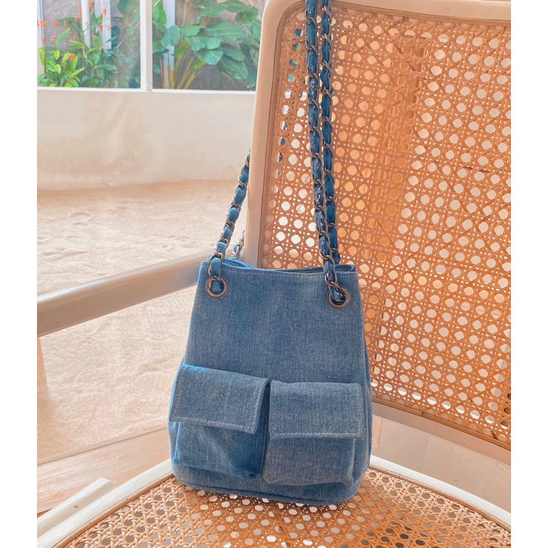 Belle bag Idr - 175000 Size - 16 x 10 x 22 cm Color - Light denim (tingkatan warna tiap washing menghasilkan hasil yang berbeda antara 3-5%) kemiripan warna asli dengan foto 90%